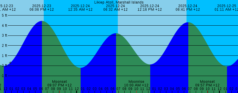 2025-12-23 11:41 AM +12 -0.02 feet Low Tide 2025-12-23 06:06 PM +12 4.46 feet High Tide 2025-12-23 06:28 PM +12 Sunset 2025-12-23 09:07 PM +12 Moonset 2025-12-24 12:35 AM +12 -0.21 feet Low Tide 2025-12-24 06:32 AM +12 3.23 feet High Tide 2025-12-24 06:55 AM +12 Sunrise 2025-12-24 10:00 AM +12 Moonrise 2025-12-24 12:16 PM +12 0.12 feet Low Tide 2025-12-24 06:28 PM +12 Sunset 2025-12-24 06:41 PM +12 4.33 feet High Tide 2025-12-24 09:57 PM +12 Moonset 2025-12-25 01:11 AM +12 -0.06 feet Low Tide 2025-12-25 06:56 AM +12 Sunrise 2025-12-25 07:10 AM +12 3.17 feet High Tide 2025-12-25 10:42 AM +12 Moonrise 2025-12-25 12:54 PM +12 0.33 feet Low Tide 2025-12-25 06:29 PM +12 Sunset 2025-12-25 07:18 PM +12 4.12 feet High Tide 2025-12-25 10:47 PM +12 Moonset 2025-12-26 01:51 AM +12 0.11 feet Low Tide 2025-12-26 06:56 AM +12 Sunrise 2025-12-26 07:55 AM +12 3.11 feet High Tide 2025-12-26 11:22 AM +12 Moonrise 2025-12-26 01:40 PM +12 0.59 feet Low Tide 2025-12-26 06:29 PM +12 Sunset 2025-12-26 08:03 PM +12 3.83 feet High Tide 2025-12-26 11:35 PM +12 Moonset 2025-12-27 02:37 AM +12 0.30 feet Low Tide 2025-12-27 06:57 AM +12 Sunrise 2025-12-27 08:51 AM +12 3.06 feet High Tide |
