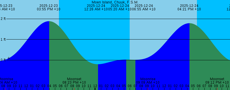 2025-12-23 08:24 AM +10 Moonrise 2025-12-23 03:55 PM +10 1.88 feet High Tide 2025-12-23 05:42 PM +10 Sunset 2025-12-23 08:23 PM +10 Moonset 2025-12-24 12:26 AM +10 -0.20 feet Low Tide 2025-12-24 05:20 AM +10 0.02 feet High Tide 2025-12-24 06:01 AM +10 Sunrise 2025-12-24 06:55 AM +10 0.01 feet Low Tide 2025-12-24 09:09 AM +10 Moonrise 2025-12-24 04:21 PM +10 1.79 feet High Tide 2025-12-24 05:42 PM +10 Sunset 2025-12-24 09:12 PM +10 Moonset 2025-12-25 12:56 AM +10 -0.12 feet Low Tide 2025-12-25 06:01 AM +10 Sunrise 2025-12-25 09:51 AM +10 Moonrise 2025-12-25 04:43 PM +10 1.62 feet High Tide 2025-12-25 05:43 PM +10 Sunset 2025-12-25 10:01 PM +10 Moonset 2025-12-26 01:21 AM +10 -0.02 feet Low Tide 2025-12-26 06:02 AM +10 Sunrise 2025-12-26 10:33 AM +10 Moonrise 2025-12-26 04:56 PM +10 1.39 feet High Tide 2025-12-26 05:43 PM +10 Sunset 2025-12-26 10:48 PM +10 Moonset 2025-12-27 01:38 AM +10 0.07 feet Low Tide 2025-12-27 06:02 AM +10 Sunrise |